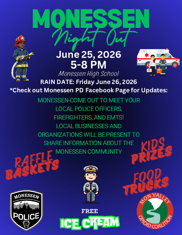 The Mon Valley Opioid Coalition (MVOC) coalition was formed to combat the ongoing opioid epidemic in the Mon Valley area. Elizabeth Comer, Executive Director of Westmoreland Drug and Alcohol Commission serves as the chair of the coalition. The coalition, whose vision statement is “Uniting the Mon Valley to ensure the long-term health, safety and well-being of individuals in the region,” meets monthly at Westmoreland Drug and Alcohol Commission’s office building’s training room in Monessen.
